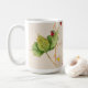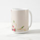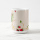 Uma aquarela original impressa em uma caneca de café clássica. Esta pintura é de morangos silvestres com flores e folhas.