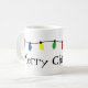Uma caneca de café de Natal com decoração de luz de Natal. Boa ideia de presente para os feriados de Natal. Saudações personalizáveis às estações.