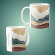Uma paisagem do nascer do sol do estilo Boho em cores vibrantes e terríveis de ouro, verde e burgundy. Ao lado da caneca há um lugar para adicionar um nome para personalização. Inspirado pelo verso bíblia de Salm 136:7-8, "7Dê obrigados a ele que fez as luzes celestiais — Seu amor fiel resiste para sempre. 8 o sol para governar o dia, Seu amor fiel durará para sempre."