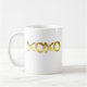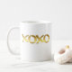 Uma caneca de café branco com os símbolos de XOXO nela no ouro