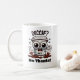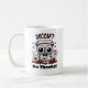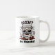 Uma xícara de café com olhos largos. A xícara está suando nervosamente, com pequenos grãos de café correndo com medo. Texto: "Decaf? Sem Obrigados!"