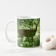 Uma caneca com foto de um veado na floresta