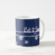 Deixe-o nevar, caneca de café personalizada. Férias divertidas para qualquer tipo de celebração de inverno. Marinho azul com flocos de neve brancos.