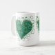 Pessoas falam sobre ter um polegar verde, talvez algumas pessoas tenham um coração verde. Um coração é formado por um arranjo intrincado de folhas verdes e tendões, criando um padrão exuberante, orgânico.