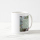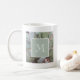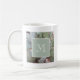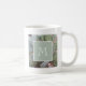 Desert Cactus Monogramas caneca de café, com uma imagem verde de pera picante e uma borda verde e branca. Com um texto personalizável branco, você pode adicionar seu próprio texto inicial. Excelente de adicionar um toque do deserto a sudoeste à sua bebida quente favorita.
