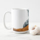 Artistic mug featuring a grayscale female portrait set above warm desert dunes, symbolizing solitude, resilience, and timeless beauty.