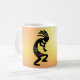 Deserto do Sudoeste Sunset Kokopelli Mug Vivid cor sunset combinação sunset que você pode personalizar as cores de fundo para corresponder ao seu decor. Culturas indígenas nativas americanas de Kokopelli. Atribuído a aliens antigos ou arte tribal e inspirado em desenhos de cavernas e rochas. Personalize o seu estilo sudoeste - as cores nativas da caneca de café americana e os estilos da xícara. ideia de presente de excelente.