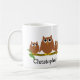 Caneca de café com design de coruja. Você pode personalizar esta caneca com qualquer texto de sua escolha. Se precisar de ajuda com a personalização, entre em contato conosco através do link de mensagem nesta página. Caneca de café personalizada com design de coruja.