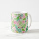 Flores caprichosas adornam esta caneca em tons de rosa, verde e azul-turquesa que certamente trarão alegria enquanto você desfruta de sua bebida matinal. Ótimo presente para mães ou damas de honra.