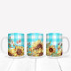 Uma caneca vibrante com um design de girassol sobre fundo azul com controle. Perfeito para adicionar um toque alegre à sua cozinha ou ao seu local de trabalho. Ideal como presente para amantes de café ou chá.