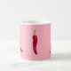 Mug que tem um design de pimenta vermelha quente em cada lado e um no centro. Também tem um pequeno fundo de verificação com uma borda ao seu redor. Escolha o tipo de caneca que você gostaria deste design. Faz um presente excelente!