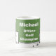 presente de golfista do escritório. Personalize esta caneca com o nome do entusiasta do golfe, e com o texto da sua escolha! Fundo verde.