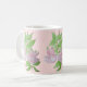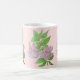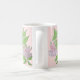 A pintura original deste bonito grupo de fuquesas cor-de-rosa é uma imagem a cores-d'água. As flores cor-de-rosa macia estão penduradas entre algumas folhas verdes e macios e são esboçadas em estilo esboçado usando uma caneta escura fina. As flores cor-de-rosa de fuchsia parecem excelentes contra o fundo preto nesta caneca floral de qualidade.