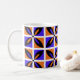Padrão floral geométrico de captura ocular com tons laranja e azuis vibrantes