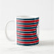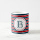 Design de temas náuticos com decoração em forma de monograma, em forma redonda, com estrelas sobre fundo listrado a azul, vermelho e branco