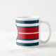 Design náutico com decoração em forma de bússola em fundo listrado vermelho, azul e branco