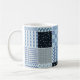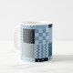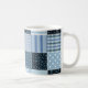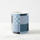 Caneca De Café Design, retalhos geométricos, tons azuis.