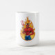 Devil with trident in the fire, Evil laughing devil, Angry red demon illustration, muscular demon with glowing eyes, strong sports cartoon character,