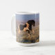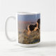 O garanhão negro tobiano, Washakie, desafia o garanhão banda, Garth, a uma batalha matinal.