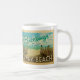 Esta design do cartão postal de Dewey Beach apresenta uma praia arenosa com uma bela água turquesa oceânica e acima do mar, um céu azul com nuvens brancas e onduladas. No estilo viagens vintage.