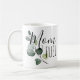 Dia das Mães apresenta folhagens de eucalipto com grande letra "mamãe" e tipografia "energia" escrita à mão na caneca de café.