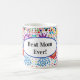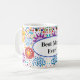 Esta caneca de café cerâmica é mostrada com um adorável design floral brilhante e colorido com uma mensagem para a mãe. Personalize este item ou comprar como está. Imagem do stock