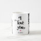 Uma caneca de café com o texto "Eu te amo" e um coração pequeno, rosa ou personalizado com o seu nome abaixo. Nas laterais estão dois modelos de fotos.