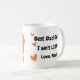 Coloque sua bebida quente favorita neste Pai divertido Leão de leite com uma caneca de café de presente de dia de os pais de cubo. Possui um adorável Pai Lion balançando com seu filhote de bebê e acentuado com corações laranja correspondentes. O verso diz "Melhor Pai NUNCA! Eu não sou o Leon! Amor. Personalizado em nome do seu filho. Perfeito para o Pai amoroso e amante do café em sua vida. Clipart por Graphic Adventure