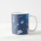 Este design apresenta um fundo azul marinho com gravata, chapéu, bigode, chave de fenda, desenhos de caneca de café, etc