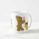 Um ursinho bonitinho segurando um cone de sorvete. Um plantador de jardim com vinha e um pássaro azul.