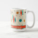 Esta caneca de café personalizada é o presente perfeito para alguém que gosta de design retrô! Ele apresenta um padrão de starburst e diamante da década de 60 com elementos vermelho, laranja e turquesa modernos do século médio em um fundo creme. O texto editável permite personalizá-lo com nomes ou qualquer mensagem desejada.