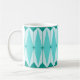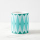 Esta Caneca de Diamantes Geométricos e Starbursts tem todo o encanto da cozinha de algo que é gatinho e encantador. A design inspirada na safra apresenta um fundo azul-pavão mod com azul-claro, hexágonos alongados, em camadas com diamantes-tartaruga, e estrelas azuis de pavão. É um caleidoscópio de retro-bondade! Este design do estilo Palm Primavera de 1950 e 1960 parece que seria igualmente em casa com uma placa moderna de meio século ou na casa da sua família de televisão clássica favorita.