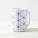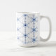Blue snowflakes in a diamond pattern on a white background. The snowflakes started as a photograph taken in 1909 of individual snowflake crystal. The subtle pattern is great for any winter holiday.