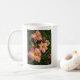 Dias cor-de-rosa contra um fundo de folhas verdes.