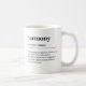 Essa caneca de cerâmica minimalista apresenta uma definição de harmonia no estilo do dicionário em tipografia branca e preta e design sofisticada. Perfeito para casas modernas, decor caseiro escandinavo, canecas minimalistas de café, design gráfico preto e branco. Linda definição de harmonia como ideia de decoração da cozinha.