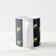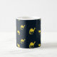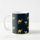 Um padrão lúgubre com dinossauros amarelos giros se posiciona sobre um fundo azul escuro, acrescentando um toque brilhante e charmoso. Esta design é perfeita para presentes infantis, trazendo um pop de cor e diversão para a mistura.