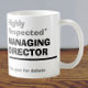 Gift Mug para o Diretor-Geral. O texto da mensagem diz "Altamente respeitado Diretor Executivo", com um post-script que diz: "Não aberto para debate". Presente para gerente, diretor-geral ou chefe de projeto ou organização.