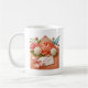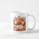 Esta clássica caneca de café branca é mostrada com uma encantadora estampa floral do Dia das Mães.