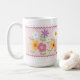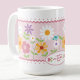Surpreenda alguém especial com um presente único para o Dia dos Namorados. Esta caneca de café apresenta um design floral alegre, bolinhas divertidas, bordas com recorte em ondas na moda e passarinhos fofos para um toque caprichoso. O que diferencia esta caneca é a capacidade de adicionar um toque pessoal com texto personalizável. Expresse seu amor e gratidão com sentimentos como “Feliz Dia dos Namorados” ou “Melhor Mãe do Mundo”. Crie um presente significativo para uma mulher especial em sua vida.