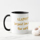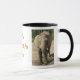 Uma caneca de 11 onças com uma imagem da cor completa de um elefante nele.
