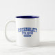 Caneca branca de café impressa com "Rosenblatt Stadium Omaha" em azul. 50% dos lucros destinam-se a ajudar a manter as pedras de cabeça históricas no Cemitério Prospect Hill de Omaha.