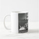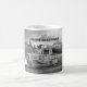 O ganso icónico do trabalho #6 da estrada de ferro do sul do Rio Grande é empoleirado sobre o lagarto que a cabeça passa sobre uma tarde tormentoso do verão. Trabalhos de arte feitos para a caneca de café por artista conhecido da estrada de ferro, J. Griff Grifo