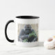 O jogo de assento do gorila com bambu cobre a caneca de café.