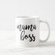 Caneca de café preto e branco com o Mama Chefe Dizer!