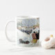 Uma cena nevado bonita do divertimento exterior do inverno: Trenós puxados a cavalo, crianças que sledding com seus cães, um carrossel no carnaval do inverno. As cores do por do sol do inverno do céu cor-de-rosa e amarelo e verde pálido como rebanhos das andorinhas emergem dos pináculos da igreja. De uma pintura 1916.