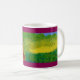 A caneca de café cerâmica com partes superiores da árvore do outono fez a varredura da pintura acrílica original.