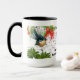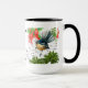 Uma caneca de café com um fundo de mapa da Ilha do Norte, nosso pássaro Fantail nativo e flor de bico de Kaka nela.
