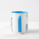 Uma caneca de café branco com uma luz - bordo e punho azuis, e um pônei de Connemara, galopando através das ondas, parte dianteira e para trás. Há igualmente um espaço para adicionar o nome de proprietário betweent as duas imagens, ou a rotulação pode ser removida completamente se preferida.