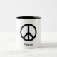 A caneca de café com uma imagem de um sinal de paz e diz a paz sob o sinal de paz