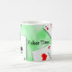 Este copo de café do divertimento caracteriza uma imagem de quatro áss em um fundo verde. O tempo do póquer do texto pode ser personalizado para serir suas necessidades da caneca.